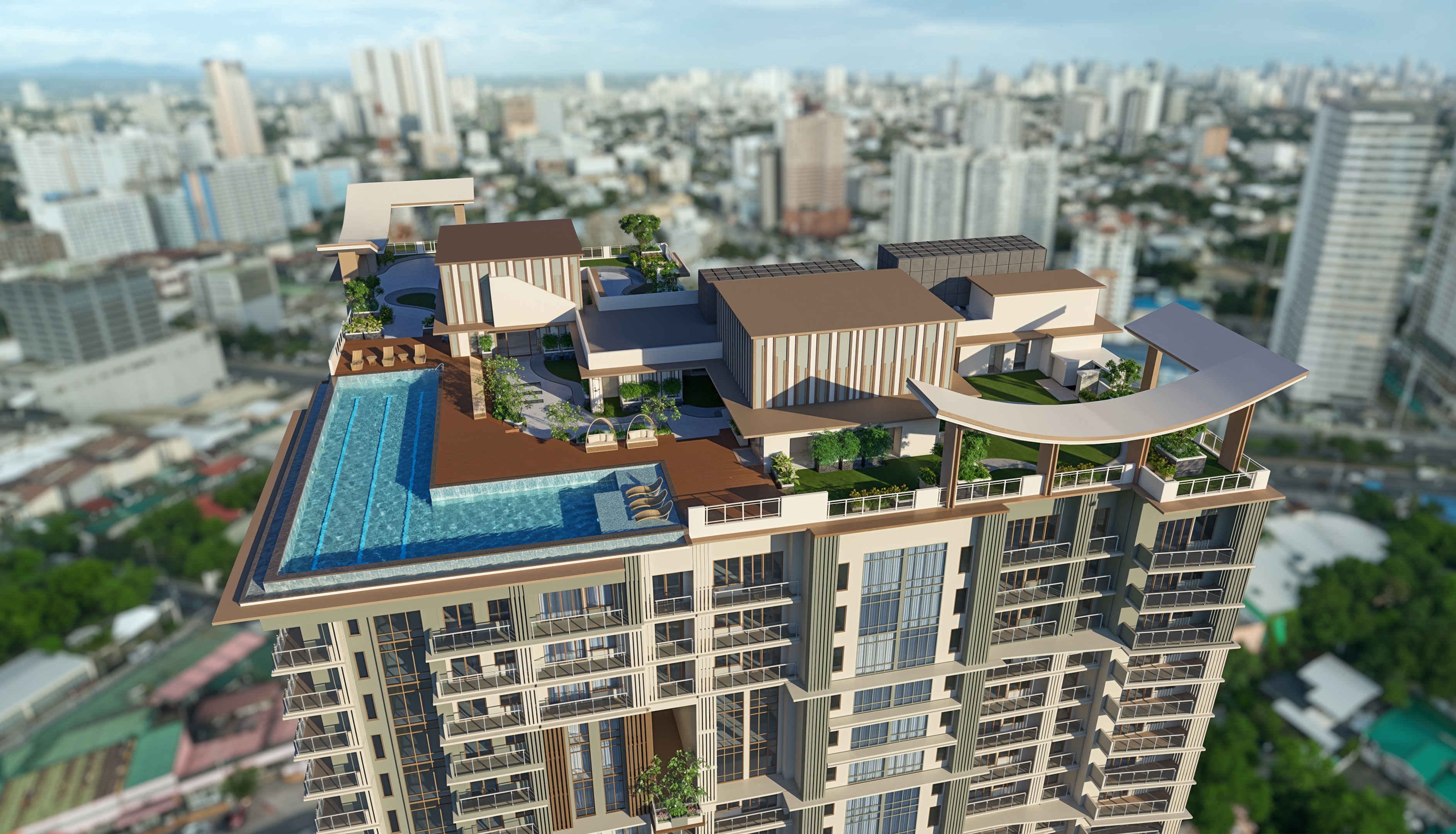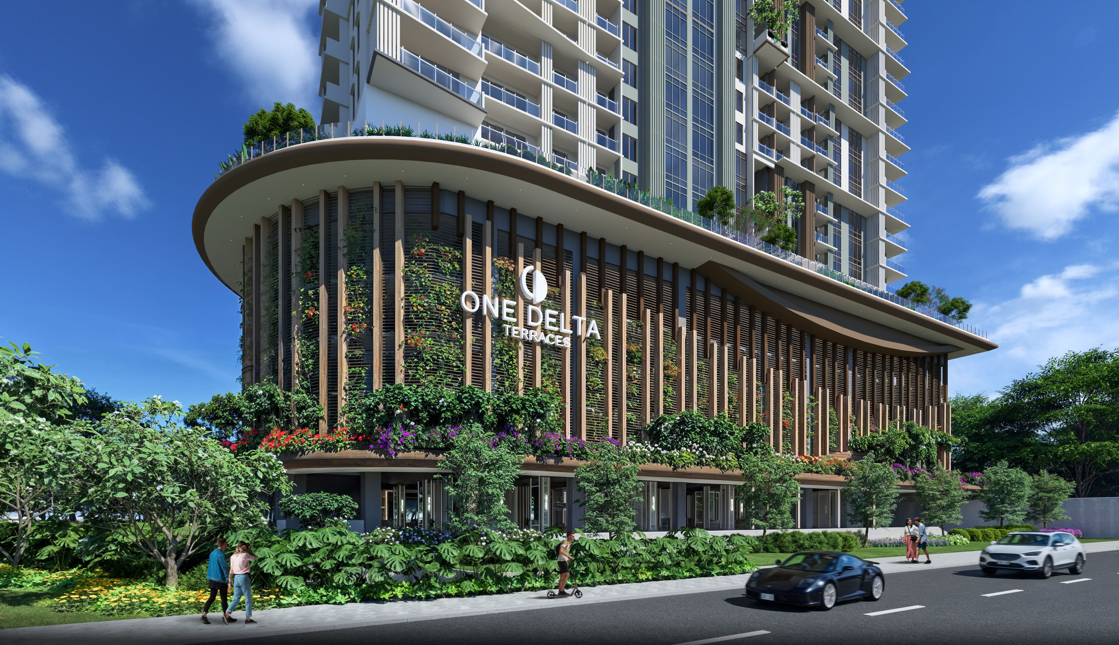One of the standout features of One Delta Terraces is its structural system which uses outriggers at strategic floors along the building height, for efficient lateral load resistance against strong winds and earthquakes.